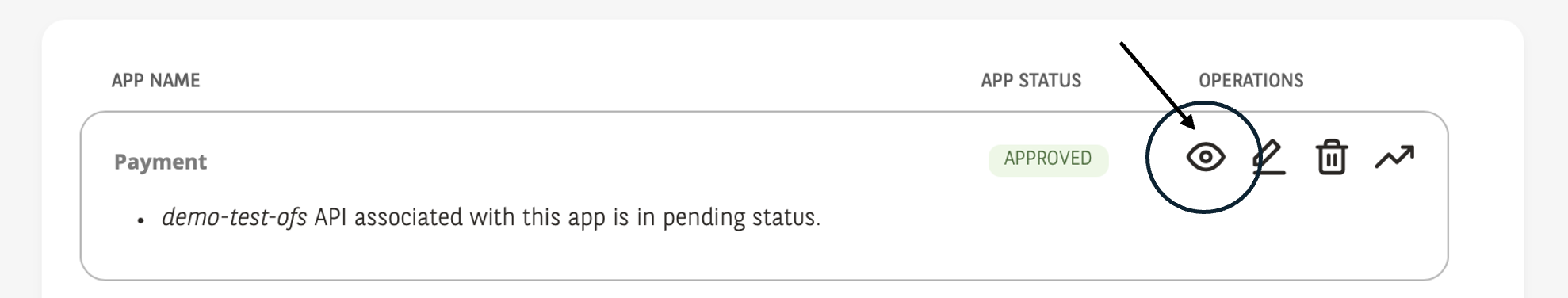 • Click on the view icon in the “OPERATIONS” column